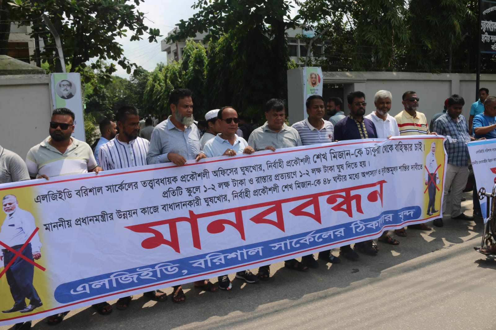 রবিবার (১ অক্টোবর) দুপুরে নগরীর বান্দ রোডে এলজিইডি ভবনের সামনে এই মানববন্ধন ও বিক্ষোভ হয়।