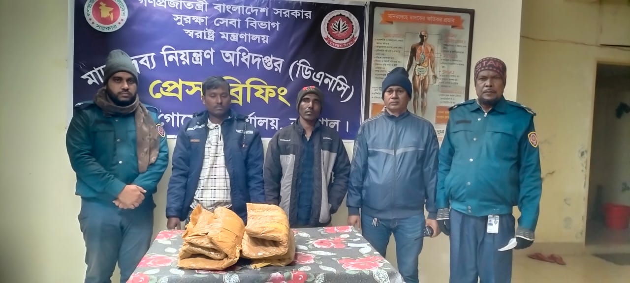 এমদাদুল কাসেম সেন্টু, উজিরপুর প্রতিনিধি : ঢাকা - বরিশাল মহাসড়কের বরিশালের উজিরপুর উপজেলার ইচলাদী বাস স্ট্যান্ডে পরিবহনে অভিযান চালিয়ে ৪ কেজি গাজা ও ১৫০ ইয়াবা সহ ৩ মাদক কারবারিকে আটক করেছে বরিশাল বিভাগীয় মাদকদ্রব্য নিয়ন্ত্রণ অধিদপ্তরের কর্মকর্তারা । ১২ জানুয়ারি শুক্রবার রাত ৮ টার সময় মাদকদ্রব্য নিয়ন্ত্রণ অধিদপ্তর, বিভাগীয় গোয়েন্দা কার্যালয়, বরিশাল এর সহকারী পরিচালক জনাব মো: এনায়েত হোসেন গোপন সংবাদের ভিত্তিতে বিভাগীয় স্টাফদের সমন্বয়ে রেইডিং পার্টি গঠন করে বরিশাল জেলার উজিরপুর উপজেলার ইচলাদী বাস স্ট্যান্ডে গাড়ী তল্লাশীকালে ঢাকা টু বরিশাল মহাসড়কের উপর ঢাকা হতে বরিশালগামী গুনগুন ট্রাভেলস (যার নং-ঢাকা মেট্রো ব -১৫- ৮৭০৭) পরিবহন যাত্রীদের তল্লাশি করে ৩ যাত্রীকে আটক করে। মোঃ সবুজ হাওলাদার (২৮) পিতা- মৃত আনসার আলী হাওলাদার , গ্রাম - চর কাউয়া, উপজেলা - বরিশাল সদর, জেলা - বরিশাল মো: বিপ্লব, পিতা - মো: আব্দুল হান্নান, গ্রাম- দৌলতপুর, উপজেলা - কুমিল্লা সদর , জেলা- কুমিল্লা,২ জনকে পেটের সাথে পেঁচানো ৪ কেজি গাজাসহ গ্রেফতার করে। মো: জাহাঙ্গীর হোসেন (৪৮), পিতা-মৃত ইদ্রিস মিয়া,গ্রাম- শুভপুর, উপজেলা - কুমিল্লা সদর, জেলা- কুমিল্লা গ্রেফতার করেন। গাজাসহ গ্রেফতারকৃত ২ আসামীর বিরুদ্ধে মাদকদ্রব্য নিয়ন্ত্রণ আইনে সংশ্লিষ্ট সহকারী পরিচালক মো: আব্দুল মজিদ ও ইয়াবা সহ গ্রেফতারকৃত ১ আসামীর বিরুদ্ধে সংশ্লিষ্ট পরিদর্শক মো: সিদ্দিকুর রহমান বাদী হয়ে উজিরপুর মডেল থানায় ২ টি নিয়মিত মামলা রুজুর করেন ।