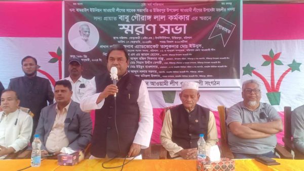 মো: এমদাদুল কাসেম সেন্টু, উজিরপুর প্রতিনিধিঃ বরিশালের উজিরপুর উপজেলার বামরাইল ইউনিয়ন আওয়ামীলীগের সাবেক সভাপতি, সাবেক ইউপি চেয়ারম্যান ও উপজেলা আওয়ামীলীগের উপদেষ্টা মন্ডলীর সদস্য সদ্য প্রয়াত বাবু গৌরাঙ্গ লাল কর্মকার এর স্মরণে স্মরণ সভা অনুষ্ঠিত হয়েছে। ১৭ ফেব্রুয়ারি শনিবার বিকেল ৪ টায় বামরাইল ইউনিয়ন আওয়ামীলীগের অঙ্গ ও সহযোগী সংগঠনের উদ্যোগে ব্যপক আয়োজনে হস্তিশুন্ড-মোরাকাঠী (এইচ.এম) ইনষ্টিটিশন এর মাঠে স্মরণ সভায় বামরাইল ইউনিয়ন আওয়ামীলীগের সভাপতি আব্দুস সালাম সরদারের সভাপতিত্বে ও সাধারণ সম্পাদক মোঃ মনিরুল ইসলাম মাষ্টার এর সঞ্চালনায় প্রধান অতিথির বক্তৃতা করেন বরিশাল জেলা আওয়ামীলীগের সাধারণ সম্পাদক ও সাবেক সংসদ সদস্য বীর মুক্তিযোদ্ধা এ্যাডঃ তালুকদার মোঃ ইউনুস। বিশেষ অতিথির বক্তৃতা করেন উপজেলা আওয়ামীলীগের সভাপতি এসএম জামাল হোসেন,সাধারণ সম্পাদক ও পৌর মেয়র মোঃ গিয়াস উদ্দিন বেপারী, বামরাইল ইউনিয়ন পরিষদের চেয়ারম্যান মোঃ ইউসুব হোসেন হাওলাদার। বক্তৃতা করেন কেন্দ্রীয় স্বেচ্ছাসেবক লীগের সদস্য সুখেন্দু বৈদ্য,উপজেলা শ্রমিক লীগের সভাপতি ও উজিরপুর উপজেলা ও পৌর প্রেসক্লাবের সভাপতি এবং উজিরপুর উপজেলা ভাইস চেয়ারম্যান প্রার্থী মোঃ রফিকুল ইসলাম শিপন মোল্লা, ইউপি সদস্য মোঃ মাইনুল ইসলাম তালুকদার, বামরাইল ইউনিয়ন স্বেচ্ছাসেবক লীগের সাধারণ সম্পাদক মোঃ মুজাহিদুল ইসলাম রাড়ী। এছাড়াও উপস্থিত ছিলেন আওয়ামীলীগের অঙ্গ সহযোগী সংগঠনের শত শত নেতাকর্মীরা ।