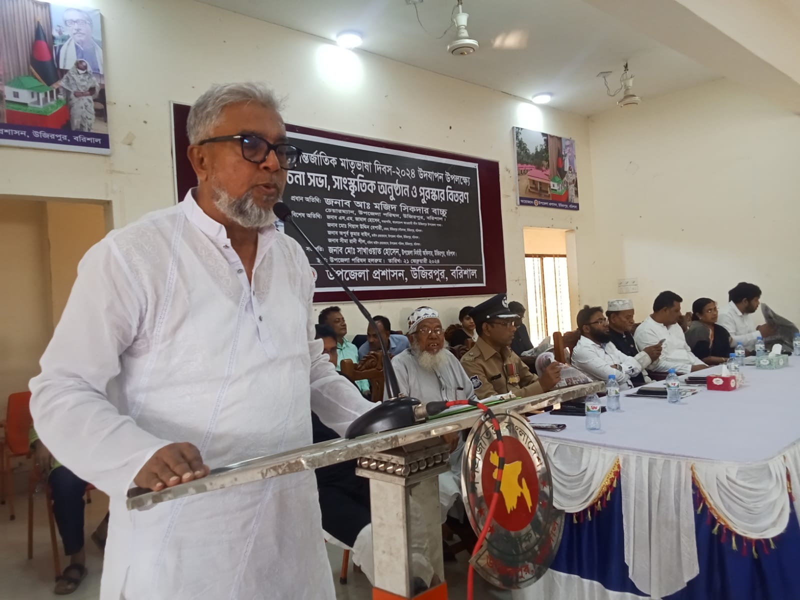মো: এমদাদুল কাসেম সেন্টু, উজিরপুর প্রতিনিধিঃ বরিশালের উজিরপুর উপজেলায় যথাযথ মর্যাদায় ব্যপক আয়োজনে শহিদ দিবস ও আন্তর্জাতিক মাতৃভাষা দিবস পালিত হয়েছে। এ উপলক্ষ্যে ২১শে ফেব্রুয়ারি বুধবার রাত ১২টা ১ মিনিটে উজিরপুর সরকারি ডব্লিউ বি ইউনিয়ন মডেল ইনস্টিটিউশন মাঠ প্রাঙ্গণে উপজেলা কেন্দ্রীয় শহিদ মিনারে পুষ্পস্তবক অর্পণ করে বরিশাল-২ আসনের সংসদ সদস্য'র পক্ষে নেতাকর্মীরা,উপজেলা আওয়ামীলীগ ও অঙ্গ ও সহযোগী সংগঠনের নেতা-কর্মী,উপজেলা প্রশাসন, উপজেলা মুক্তিযোদ্ধা,উজিরপুর মডেল থানা পুলিশ, উজিরপুর উপজেলা ও পৌর প্রেসক্লাব,উজিরপুর সাংবাদিক ইউনিয়ন, শিক্ষা প্রতিষ্ঠানসহ বিভিন্ন দপ্তর। এছাড়াও উপজেলা বিএনপি আহবায়ক ও কেন্দ্রীয় কমিটির সদস্য এস সরফুদ্দি আহমেদ সান্টুর আয়োজনে এবং নির্দেশনায় উপজেলা বিএনপিসহ অঙ্গ ও সহযোগী সংগঠনের নেতাকর্মীরা পুষ্পস্তবক অর্পণ করেন। সূর্যোদয়ের সাথে সাথে সঠিক নিয়মে,সঠিক মাপের জাতীয় পতাকা উত্তোলন করা হয়। চিত্রাঙ্কন প্রতিযোগিতা,রচনা প্রতিযোগিতা, আলোচনা সভা ও সাংস্কৃতিক অনুষ্ঠান অনুষ্ঠিত হয়েছে। সকল ভাষা শহিদের রুহের মাগফেরাত কামনায় উপজেলার সকল মসজিদ, মন্দির, গীর্জা, প্যাগোডাসহ উপাসনালায় গুলোতে মোনাজাত ও প্রার্থনা করা হয় । উজিরপুর উপজেলা প্রশাসনের উদ্যোগে শহিদ দিবস ও আন্তর্জাতিক মাতৃভাষা দিবস উদযাপন উপলক্ষ্যে আলোচনা সভা,সাংস্কৃতিক অনুষ্ঠান ও পুরস্কার বিতরণ অনুষ্ঠান অনুষ্ঠিত হয়েছে। বেলা ১১ টায় উপজেলা পরিষদের সভাকক্ষে সভায় উপজেলা নির্বাহী কর্মকর্তা মোঃ সাখাওয়াত হোসেন এর সভাপতিত্বে প্রধান অতিথির বক্তৃতা করেন উপজেলা আওয়ামীলীগের সিনিয়র সহ-সভাপতি ও উপজেলা চেয়ারম্যান আঃ মজিদ সিকদার বাচ্চু। বিশেষ অতিথির বক্তৃতা করেন উপজেলা আওয়ামীলীগের সভাপতি এসএম জামাল হোসেন, সাধারণ সম্পাদক ও পৌর মেয়র মোঃ গিয়াস উদ্দিন বেপারী, ভাইস চেয়ারম্যান অপূর্ব কুমার বাইন রন্টু, সীমা রানী শীল। উপজেলা সমাজসেবা কর্মকর্তা মোঃ আবুল কালাম আজাদ এর সঞ্চালনায় বক্তৃতা করেন উপজেলা সহকারী কমিশনার ভূমি কে এম ইশমাম, উজিরপুর মডেল থানার অফিসার ইনচার্জ মোঃ জাফর আহম্মেদ। উপজেলা ডেপুটি কমান্ডার বীর মুক্তিযোদ্ধা আক্রাম হোসেন, উপজেলা প্রাথমিক শিক্ষা অফিসার মোঃ রুহুল আমিন, প্রধান শিক্ষক মোঃ শাহেআলম। এছাড়া উপস্থিত ছিলেন উপজেলা স্বাস্থ্য ও পঃপঃ কর্মকর্তা ডাঃ শওকত আলী, উপজেলা মাধ্যমিক শিক্ষা অফিসার এবিএম জাহিদ হোসেন, উপজেলা প্রকল্প বাস্তবায়ন কর্মকর্তা অয়ন সাহা, উপজেলা প্রকৌশলী সুব্রত রায়, উপজেলা কৃষি অফিসার কপিল বিশ্বাস ও বিভিন্ন দপ্তরের কর্মকর্তা কর্মচারীগন। এছাড়া উপস্থিত ছিলেন বিভিন্ন সামাজিক ও রাজনৈতিক নেতৃবৃন্দ। দি