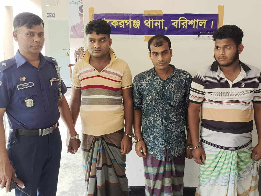 ০২/০৪/২০২৪ ইং রোজ সোমবার এস আই (নিঃ) মোঃ রিয়াজ উদ্দিন থানা এলাকায় আসন্ন পবিত্র ঈদুল ফিতর উপলক্ষে ঘরমুখো মানুষের নিরাপত্তা নিশ্চিত করন সহ গ্ৰেপ্তারী পরোয়ানা তামিল বিউটি করাকালিন সময় রাত ১১:১৫ মিনিটে গোপন সংবাদের ভিত্তিতে জানতে পারেন ১২ নং রঙ্গশ্রী ইউনিয়নের পশ্চিম শ্যামপুর সিনিয়র আলিম মাদ্রাসার একটি রুমে কতিপয় চিহ্নিত ডাকাত দেশীয় অস্ত্রসহ সজ্জিত হয়ে ডাকাতি করার উদ্দেশ্যে সমবেত হয়ে গোপন বৈঠক করিতেছে। এবং ডাকাতির প্রস্তুতি নিচ্ছে। ঘটনার সংবাদ পেয়ে সাথে সাথে পুলিশের উর্ধ্বতন কর্মকর্তাদের অবহিত করেন। ডাকাতের এমন প্রস্তুতির সংবাদে দ্রুত আটক সহ আইনানুগ ব্যবস্থা নিতে নির্দেশ দেন বরিশাল অতিরিক্ত পুলিশ সুপার ফরহাদ হোসেন সর্দার। নির্দেশনা পেয়ে বাকেরগঞ্জ থানা পুলিশ পরিদর্শক তদন্ত মোঃ গোলাম মোস্তফার নেতৃত্বে অভিযান চালিয়ে সংঘবদ্ধ ০৩ ডাকাত কে গ্ৰেপ্তার করেন। এসময় পুলিশের অভিযানের টের পেয়ে পালিয়ে যায় ৪/৫ ডাকাত। অভিযানে গ্রেফতারকৃত ডাকাত তিনজন হলো (১) মোঃ সোহেল খান (২৮) পিতা নুর ইসলাম খান (,২ ) মোঃ রানা খান ( ২৬) পিতা আঃ রাজ্জাক খান (,০৩) মোঃ সাব্বির খান ( ২৩) পিতা মোঃ মামুন খান, সংঘবদ্ধ ডাকাতদের আটক করে বাকেরগঞ্জ থানায় নিয়ে আসেন।