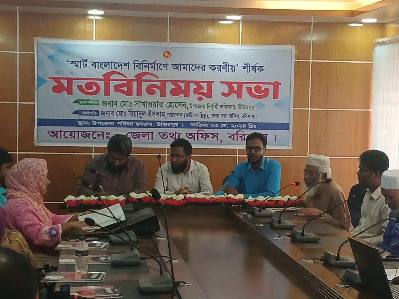 মো: এমদাদুল কাসেম সেন্টু,উজিরপুর প্রতিনিধিঃ বরিশালের উজিরপুর উপজেলায় স্মার্ট বাংলাদেশ বিনির্মানে আমাদের করনীয় শীর্ষক মতবিনিময় সভা অনুষ্ঠিত হয়েছে। ২৩ মে বৃহস্পতিবার বেলা ১১ টায় উপজেলা পরিষদের সভাকক্ষে বরিশাল জেলা তথ্য অফিস এর আয়োজনে মতবিনিময় সভায় বরিশাল জেলা তথ্য অফিস এর পরিচালক (রুটিন দায়িত্ব) মোঃ রিয়াদুল ইসলামের সভাপতিত্বে প্রধান অতিথির বক্তৃতা করেন উজিরপুর উপজেলা নির্বাহী কর্মকর্তা মোঃ সাখাওয়াত হোসেন। বক্তৃতা করেন উপজেলা স্বাস্থ্য ও পঃপঃ কর্মকর্তা ডাঃ শওকত আলী, বীর মুক্তিযোদ্ধা আক্রাম হোসেন। এছাড়াও উপস্থিত ছিলেন বিভিন্ন দপ্তরের কর্মকর্তা কর্মচারীগন৷ এসময় প্রধান অতিথি উপজেলা নির্বাহী কর্মকর্তা মোঃ সাখাওয়াত হোসেন,স্মার্ট বাংলাদেশ বিনির্মানে আমাদের করনীয় শীর্ষক মতবিনিময় সভায় বিভিন্ন দিক নির্দেশনা মূলক বক্তব্য প্রধান কারণ ।