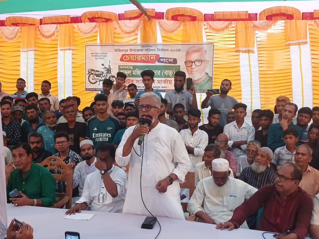 মো: এমদাদুল কাসেম সেন্টু,উজিরপুর প্রতিনিধিঃ আগামী ৫ জুন উজিরপুর উপজেলা পরিষদের নির্বাচনকে ঘিরে মোটরসাইকেল প্রতীকের উপজেলা চেয়ারম্যান প্রার্থী আলহাজ্ব আব্দুল মজিদ সিকদার বাচ্চুর সমর্থনে উঠান বৈঠকে জনতার ঢল। ২ জুন রবিবার বিকেল ৫ টায় উজিরপুর মহিলা কলেজ মাঠে উঠান বৈঠকে পৌর আওয়ামী লীগের সভাপতি তাপস সাহার সভাপতিত্বে ও সাবেক কাউন্সিলর বাবুল সিকদারের সঞ্চালনায় বক্তৃতা করেন উজিরপুর উপজেলা আওয়ামীলীগের সিনিয়র সহ-সভাপতি ও মোটরসাইকেল প্রতীকের উপজেলা চেয়ারম্যান প্রার্থী আলহাজ্ব আব্দুল মজিদ সিকদার বাচ্চু। বক্তৃতা করেন উপজেলা আওয়ামী লীগের সহ-সভাপতি ও জেলা পরিষদের সদস্য অশোক কুমার হাওলাদার, আঃ হাকিম সন্নামত, এ্যাডঃ সালাউদ্দিন শিবু,যুগ্ম সাধারণ সম্পাদক ও ইউপি চেয়ারম্যান এ্যাডঃ শহিদুল ইসলাম মৃধা, কাউন্সিলর মোঃ খবির উদ্দিন হাওলাদার, উপজেলা যুবলীগের সাধারণ সম্পাদক ও প্যানেল মেয়র মোঃ হেমায়েত উদ্দিন, উপজেলা ছাত্রলীগের সভাপতি অসিম কুমার ঘরামী, উপজেলা ওয়ার্কার্স পার্টির সভাপতি মোঃ ফায়জুল হক বালী ফারাহীন,উপজেলা মহিলা আওয়ামী লীগের সভাপতি বিউটি খানম, উজিরপুরে কৃতি সন্তান ডাঃ আব্দুর রহিম সিকদার, ইউপি চেয়ারম্যান আঃ খালেক রাড়ীসহ অনেকে। এ উঠান বৈঠককে ঘিরে দুপুর থেকে সভাস্থলে হাজার হাজার নারী-পুরষ ভোটাররা জড়ো হয়। একপর্যায়ে সভাস্থলে জনসমুদ্রে পরিনত হয়।