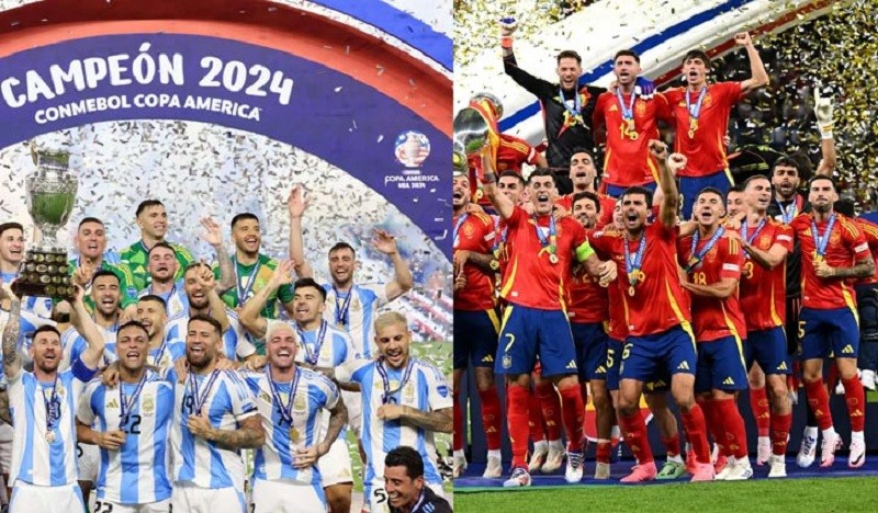 কয়েক ঘণ্টার ব্যবধানে পর্দা নামলো দুই মহাদেশীয় ফুটবলের দুই আসর। রোববার (১৪ জুলাই) রাতে ইংল্যান্ডকে ২-১ গোলে হারিয়ে উয়েফা ইউরোপীয় চ্যাম্পিয়নশিপের শিরোপা ঘরে তুলে স্পেন। সোমবার (১৫ জুলাই) সকালে কলম্বিয়াকে ১-০ গোলে হারিয়ে শিরোপা জিতে আর্জেন্টিনা।