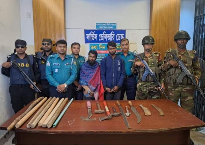 বরিশালে যৌথবাহিনীর অভিযানে মৎস্যজীবি দলের নেতার গ্যারেজ থেকে দেশীয় অস্ত্রসহ আটক- ২