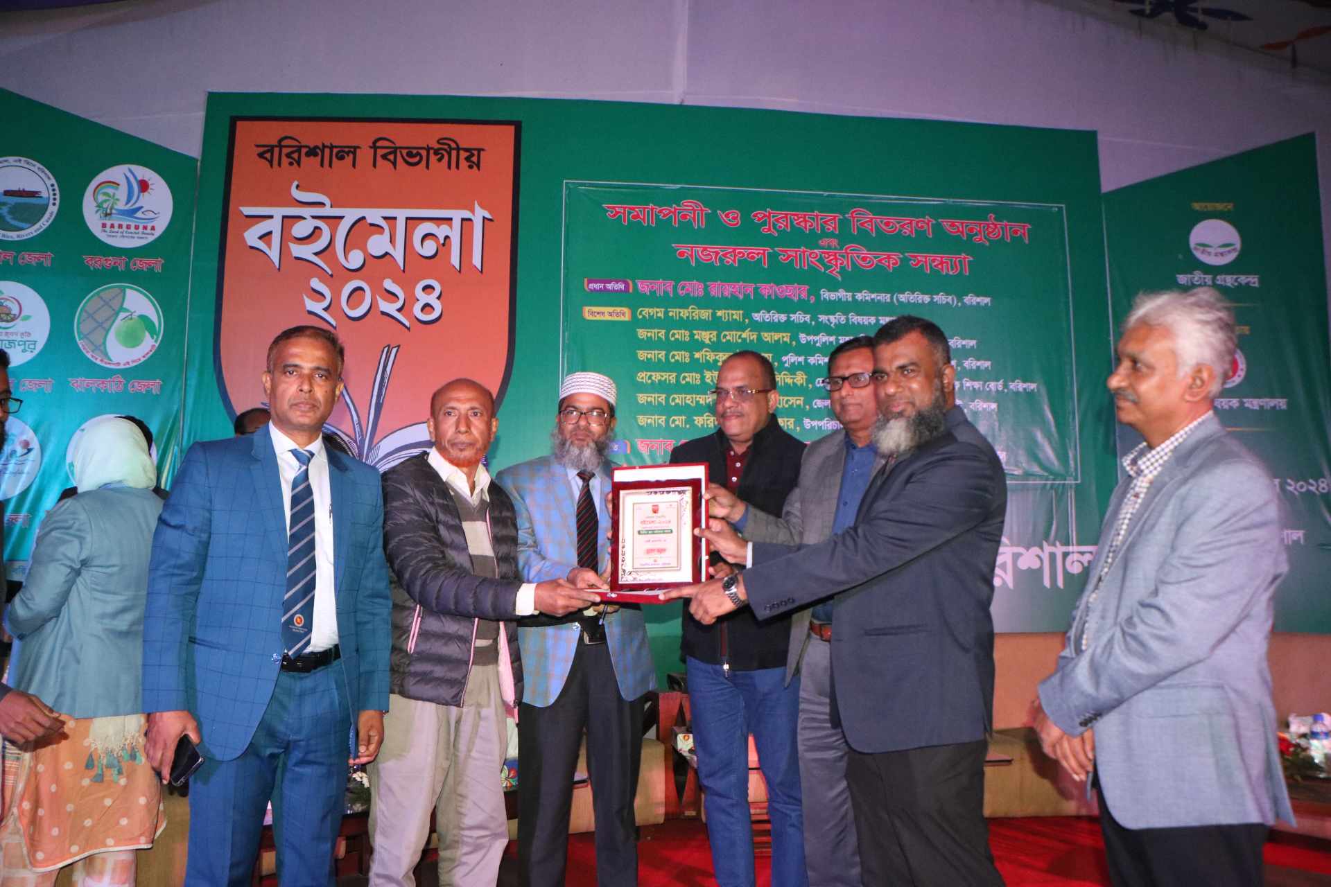নিউজ ডেস্ক: ১ ডিসেম্বর বুধবার রাত ৭ টায় সংস্কৃতি বিষয়ক মন্ত্রণালয়ের পৃষ্ঠপোষকতায়, বরিশাল বিভাগীয় প্রশাসনের ব্যবস্থাপনায় এবং জাতীয় গ্রন্থকেন্দ্রের আয়োজনে নগরীর বেলস্ পার্কে আট দিনব্যাপী বরিশাল বিভাগীয় বইমেলা ২০২৪ এর সমাপনী ও পুরস্কার বিতরণ অনুষ্ঠান এবং নজরুল সাংস্কৃতিক সন্ধ্যা অনুষ্ঠিত হয়।