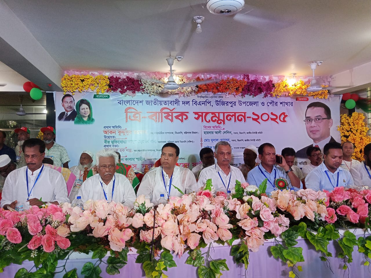 মো:এমদাদুল কাসেম সেন্টু, উজিরপুর প্রতিনিধিঃ ব্যাপক উৎসাহ উদ্দীপনা ও উৎসব মুখোর পরিবেশে বরিশালের উজিরপুর উপজেলা ও পৌর বিএনপির ত্রি-বার্ষিক সম্মেলন অনুষ্ঠিত হয়েছে। উজিরপুর উপজেলা ও পৌর বিএনপির ত্রি-বার্ষিক সম্মেলন অনুষ্ঠিত হয়। ২১ জুলাই সোমবার উজিরপুর উপজেলার গুঠিয়ায় বাইতুল ভিউ কমিউনিটি সেন্টারে বিএনপির জাতীয় নির্বাহী কমিটির সদস্য, বরিশাল জেলা কমিটির যুগ্ম আহবায়ক ও উজিরপুর উপজেলা বিএনপির আহবায়ক এস সরফুদ্দিন আহমেদ সান্টু'র সভাপতিত্বে ও উপজেলা বিএনপির যুগ্ম আহ্বায়ক সরদার সিদ্দিকুর রহমান এবং উজিরপুর উপজেলা যুবদলের আহবায়ক আফম সামসুদ্দোহা আজাদ এর সঞ্চালনায় উজিরপুর উপজেলা ও পৌর বিএনপির ত্রি-বার্ষীক সম্মেলনে প্রধান অতিথির বক্তৃতা করেন বিএনপির বরিশাল বিভাগীয় কমিটির সহ-সাংগঠনিক সম্পাদক আকন কুদ্দুসুর রহমান। উদ্বোধক বরিশাল জেলা দক্ষিণ বিএনপির আহবায়ক বীর মুক্তিযোদ্ধা মোঃ আবুল হোসেন খান, বিশেষ বক্তা হিসেবে বক্তৃতা করেন বরিশাল জেলা দক্ষিণ বিএনপির সদস্য সচিব এ্যাডঃ আবুল কালাম শাহীন। বিশেষ অতিথির বক্তৃতা করেন বরিশাল জেলা বিএনপির সাবেক সভাপতি এবায়দুল হক চান, বিএনপির জাতীয় নির্বাহী কমিটির সদস্য হায়দার আলী লেলিন, বাংলাদেশ জাতীয়তাবাদী ছাত্র দলের কেন্দ্রীয় কমিটির সাবেক সাধারণ সম্পাদক মোঃ সাইফ মাহমুদ জুয়েল। উপস্থিত ছিলেন ঢাকা উত্তর ছাত্রদলের সাধারণ সম্পাদক মোঃ রাসেল বাবু। বক্তৃতা করেন উজিরপুর পৌর বিএনপির আহবায়ক মোঃ শহিদুল ইসলাম খান, উজিরপুর উপজেলা বিএনপির সদস্য সচিব মোঃ হুমায়ুন খান,যুগ্ম আহবায়ক এস এম আলাউদ্দিন, বানারীপাড়া উপজেলা বিএনপির সভাপতি মোঃ শাহে আলম মিঞা, সাধারণ সম্পাদক মোঃ রিয়াজ আহমেদ। অনুষ্ঠানের শুরুতে কোরআন তেলোয়াত করেন বায়তুল আমান জামে মসজিদের ইমাম হাফেজ মাওলানা মোঃ সিদ্দিকুর রহমান ।এছাড়াও উপস্থিত ছিলেন বিএনপির অঙ্গ ও সহযোগী সংগঠনের হাজার হাজার নেতাকর্মী। এসময় প্রধান অতিথি ও অনুষ্ঠানের সভাপতিসহ উপস্থিত অতিথি বৃন্দ বাংলাদেশ জাতীয়তাবাদী দল বিএনপির হাতকে আরো শক্তিশালী করার লক্ষ্যে বিভিন্ন দিক নির্দেশনা মূলক আলোচনা করেন। এস সরফুদ্দিন আহমেদ সান্টু উপজেলা সভাপতি ও সাধারণ সম্পাদক মো: হুমায়ুন খান নির্বাচিত হন। পৌর সভার মো: শহিদুল ইসলাম খান সভাপতি ও মো: রোকনুজ্জামান টুলু সাধারণ সম্পাদক নির্বাচিত হন । এদিকে নবনির্বাচিত উজিরপুর উপজেলা ও পৌর বিএনপির নেতৃবৃন্দকে শুভেচ্ছা ও অভিনন্দন জানিয়েছেন বিএনপির অঙ্গ ও সহযোগী সংগঠনের নেতা-কর্মীরা।