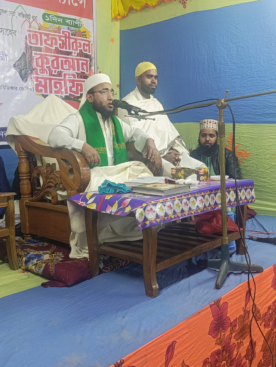 এসএম শাহ আলম, বিশেষ প্রতিনিধি : বরিশাল জেলার মেহেন্দিগঞ্জ উপজেলা কাজিরহাট থানা ২ নং লতা ইউনিয়নের চর সন্তোষপুর এলাকার হাজির হাট বাজারে গত ৬ ডিসেম্বর শনিবার আছরবাদ যুব সমাজের উদ্যোগে ১ দিনব্যাপী তাফসীরুল কুরআন মাহফিল অনুষ্ঠিত হয়েছে।উক্ত অনুষ্ঠানের সভাপতিত্ব করেন বীর মুক্তিযোদ্ধা মো: ইউনুস নলী অব: বিডিআর (জেসিও)। তাফসীরুল কুরআন মাহফিলের প্রধান অতিথি হিসেবে উপস্থিত ছিলেন মো: কামাল হোসেন হাওলাদার সাবেক ছাত্রদল ও যুবদল নেতা কাজিরহাট। মাহফিলে প্রধান বক্তা ছিলেন বিশিষ্ট ইসলামী চিন্তাবিদ হযরত মাওলানা মুফতি মোহাম্মদ আব্দুল কবির ফিরোজী। খতিব দোলেশ্বর হানাফী মসজিদ ঢাকা, মুহতামিম মাদ্রাসা ফাতেমা (রা:) হাসান ঢাকা।