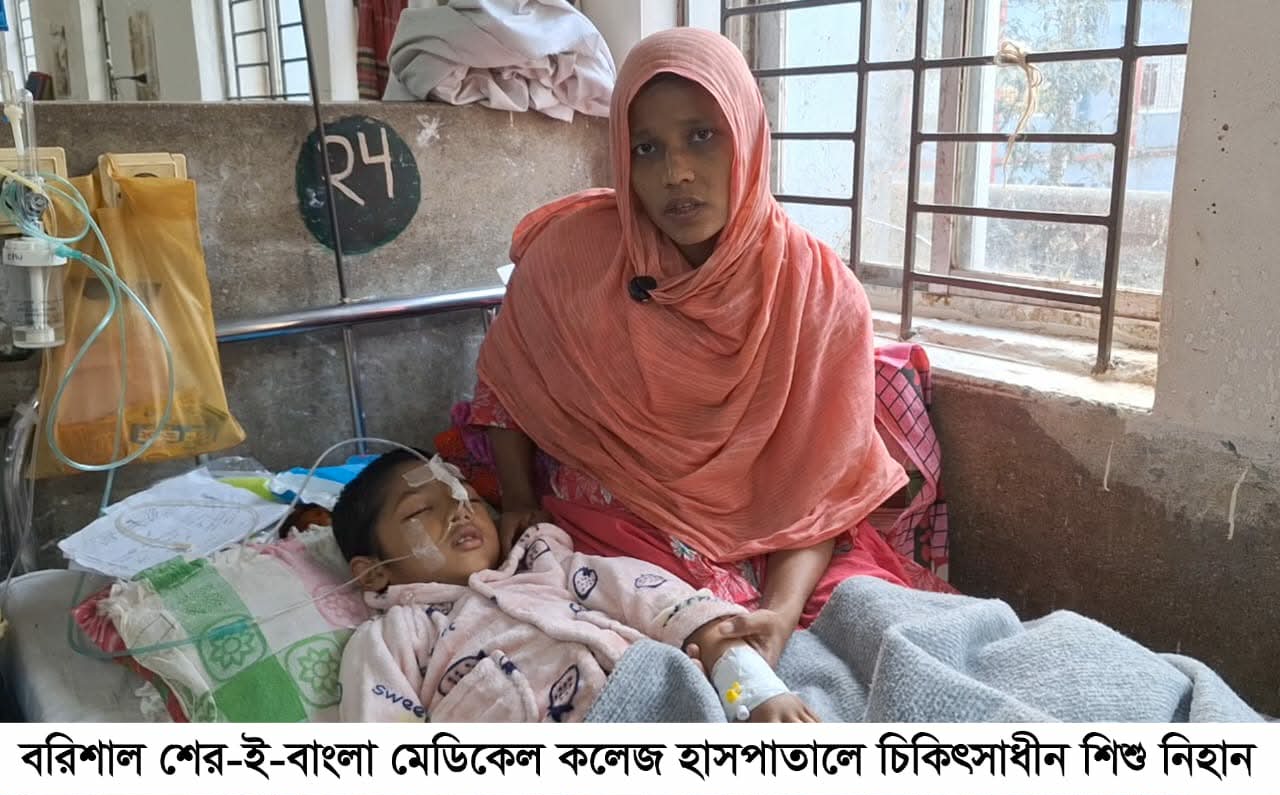বরিশাল প্রতিনিধি ॥ মুখে অক্সিজেন নিয়ে গত ২২ দিন ধরে হাসপাতালের শয্যায় মৃত্যুর প্রহর গুণছে মাত্র ৬ বছরের শিশু নিহান। শয্যা পাশে অসহায় মা নির্বাক হয়ে তাকিয়ে আছেন সন্তানের মুখের দিকে।