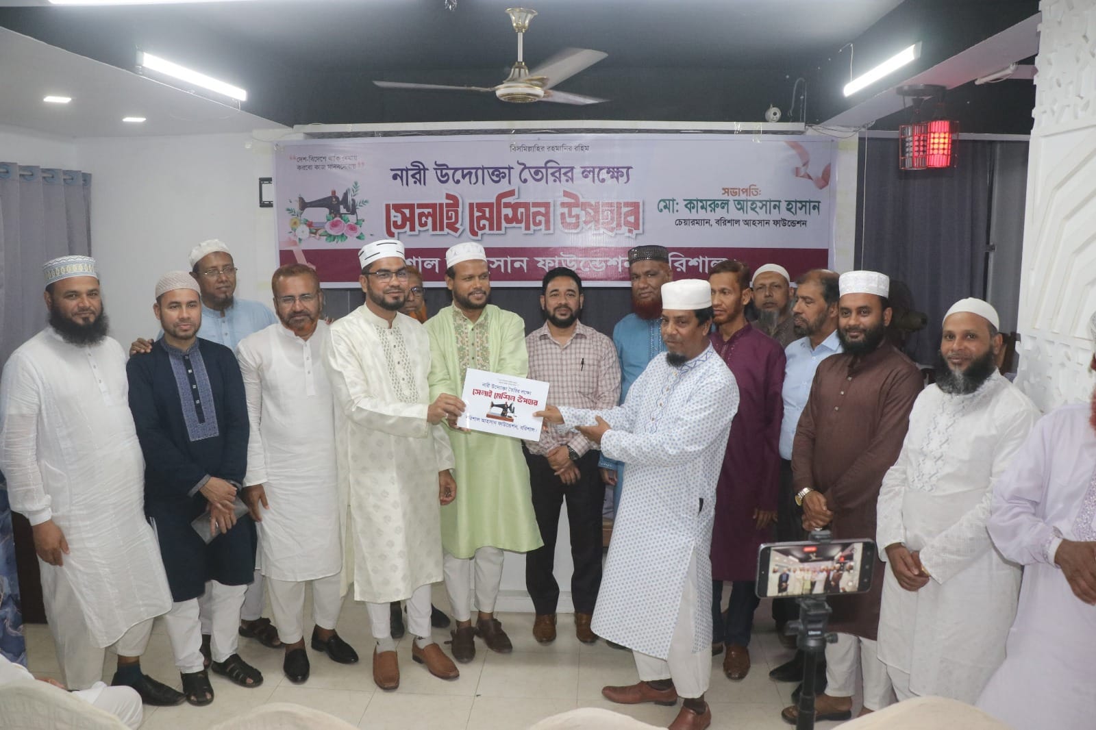 নিজস্ব প্রতিবেদক: বরিশাল আহসান ফাউন্ডেশনের মতবিনিময় সভা ও ঈদ পুনর্মিলনী অনুষ্ঠানে নারী উদ্যোক্তা তৈরীর লক্ষ্যে সেলাই মেশিন উপহার দেয়া হয়েছে। বুধবার (২৫ মার্চ) সন্ধায় বরিশাল হোটেল কিং ফিশারের কনফারেন্স রুমে বরিশাল আহসান ফাউন্ডেশন এর চেয়ারম্যান মো: কামরুল আহসান হাসানের সভাপতিত্বে এসময় অতিথি হিসেবে উপস্থিত ছিলেন- বরিশাল বিএম কলেজের সাবেক জিএস শেখ নেয়ামুল করিম, বরিশাল জেলা শিক্ষা অফিসার (উপ-পরিচালক) মো: জাহাঙ্গীর হোসেন, বিশিষ্ট সমাজসেবক মোঃ শাহজাহান গাজী, অধ্যক্ষ মো: ফরিদুল আলম, নির্বাচন কর্মকর্তা আব্দুল হাই আল হাদী, বরিশাল সিটি কর্পোরেশনের ৩০ নং ওয়ার্ডের সাবেক কাউন্সিলর নিয়াজ মোহাম্মদ বেগ, ট্রাস্টি ইসলামী লাইফ ইন্স্যুরেন্সের ডিএমডি রেজা আকবর ফয়সাল, সহকারী অধ্যাপক মনিরুজ্জামান খান শামীম, জাহাঙ্গীর আলম কবির, সাংবাদিক জাকিরুল আহসান সহ গণ্যমান্য ব্যাক্তিবর্গ। বরিশাল আহসান ফাউন্ডেশন এর চেয়ারম্যান মো: কামরুল আহসান হাসান জানান, সেচ্ছাসেবী সংঘঠনটির মূল উদ্দেশ্য হচ্ছে সুবিধাবঞ্চিত মানুষকে সহযোগিতা করা, আর্থিকভাবে অস্বচ্ছল ছাত্র-ছাত্রীদের পাশে দাড়ানো, নারী উদ্যোক্তা তৈরি করা, নারীদেরকে সাবলম্বী করার জন্য সেলাই মেশিন বিতরন করা, ঈদ-উল-আযহা ও ঈদুল ফিতরে উপহার প্রদান করা, অসুস্থ রোগীর চিকিৎসা সেবা এবং শীতকালে গরিব অসহায়দের মাঝে শীতবস্ত্র বিতরণ করা সহ সমাজের গুরুত্বপূর্ণ কাজে অংশীদার হওয়া।