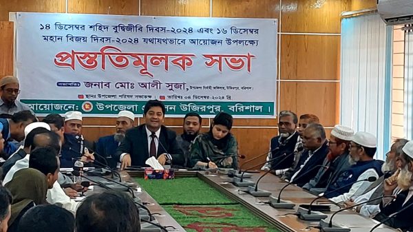 মো:এমদাদুল কাসেম সেন্টু, উজিরপুর প্রতিনিধিঃ বরিশালের উজিরপুর উপজেলায় উপজেলা প্রশাসনের উদ্যোগে আগামী ১৪ ডিসেম্বর শহিদ বুদ্ধিজীবি ও ১৬ ডিসেম্বর বিজয় দিবস উপলক্ষে প্রস্তুতিমূলক সভা অনুষ্ঠিত হয়েছে। ৪ ডিসেম্বর বেলা ১১