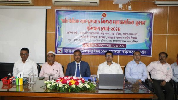 নিউজ ডেস্ক: ১৭ নভেম্বর রবিবার সকল ৯ টায় আঞ্চলিক প্রশিক্ষণ কেন্দ্র সমাজসেবা অধিদপ্তর এর আয়োজনে নগরীর কালিবাড়ি রোডস্থ জেলা আঞ্চলিক প্রশিক্ষণ কেন্দ্রে ৫ দিনব্যাপী প্রতিষ্ঠানিক ব্যবস্থাপনা ও শিশুর মনোসামাজিক সুরক্ষা